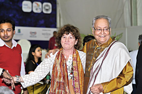 When Catherine Berge hugged Soumitra at the Book Fair inauguration last Tuesday, hardly anyone recognised her, much less knew her association with him. At the investiture ceremony that night, as soon as the French ambassador planted the insignia on Soumitra's shawl, she beamed: "My suggestion has borne fruit."