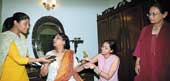 | It takes a deeper look at exploitation as the order of the day, but its creative process has been “great fun” for the four women concerned. It’s almost nihilistic in tone, but it could well spark a resurgence on the Calcutta stage. Theatre veteran Sohag Sen (right), has brought together “friend” Renu Roy and two young women she’s “known since they were kids”, Konkona Sen Sharma and Niharika Seth, for the first trilingual venture in town. Pinky and Asha Mary tells the tale of an ex-cine star who employs two girls. “There is no script. The play is evolving through workshops, which combine hard work with lots of fun,” says Sen, “pleased” by the effort her three-member cast is putting in. The curtains go up on the Spandan production on September 29 and October 1. Picture by Aranya Sen |