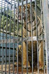 The tiger weighed 250 kg and it took around 20 men to lift the cage on the vehicle. It was calm while being taken away from the hospital but once on the truck, it roared and leapt towards the crowd around the cage.