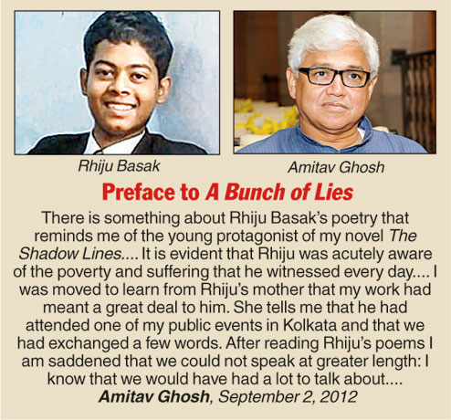 Rhiju Basak’s favourite author Amitav Ghosh had said he would seek his autograph one day, little knowing that he would be penning the preface to a compilation of his poetry to be released posthumously on what would have been the boy’s 18th birthday this Wednesday.