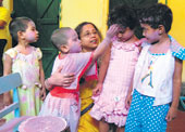 | A touch of blush: Children of Nivedita Mission English-medium school, in Behala, celebrated Holi on March 15 with singer Snigdha Mitra |