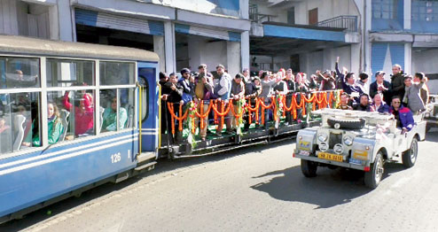 He and his friends were not disappointed. On Thursday, the Land Rovers started from Maneybhanjyang and reached Ghoom station around 11am. After a wait for about 20 minutes, they began the 8km journey with a century-old steam engine with two bogies and a wagon attached. Traditional dances were performed along the route.