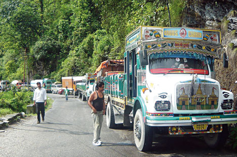 File picture of vehicles lined up on NH10, the highway which connects Sikkim with Bengal and the rest of the country.