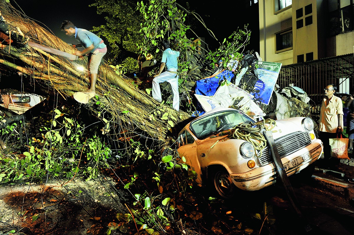 "I was seated inside the car as it was raining heavily. Other vehicles were parked nearby," Montu Halder, who lives in the Bagmari Road area, said. "There was a creaking sound and I saw a huge banyan tree coming crashing down."