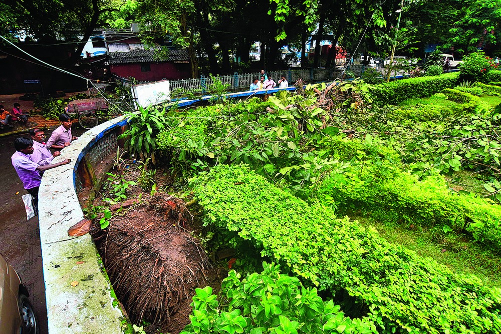 Five trees fell during the deluge on Monday. At least 120 trees in the Calcutta Municipal Corporation area had toppled on August 18 when a 70kmph storm hit the city. Four people died after uprooted trees fell on them.