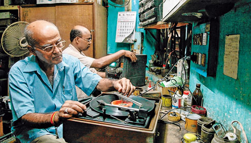 The owner, Gopal Chandra Chakrabarty, says he opened shop in 1962, when he sold radiograms and radios of all brands. He sells and repairs TV sets of all brands as well, but he is best known for his music systems, and this is what attracted Satyajit Ray, the lyricist Pulak Bandopadhyay and Usha Uthup.