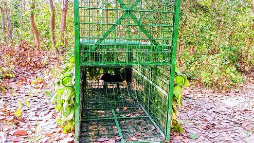 Live baits have been placed in the traps set up at strategic locations inside the Melkhedia forest by a team of forest officials and vets from the Sunderbans. The traps are camouflaged with leaves and twigs.