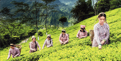 | A tea garden in Darjeeling |