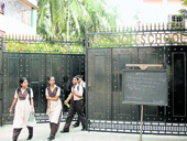 | The gates of Vivekananda Mission School with the closure notice. Picture by Tamaghna Banerjee |
