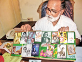 | Pradyut Kumar Pal shows his collection of booklet covers of Uttam Kumar films. Picture by Sudeshna Banerjee |