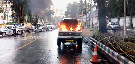 Salt Lake: A pickup with passengers caught fire near the Sports Authority of India (SAI) Complex in Salt Lake on Saturday afternoon.