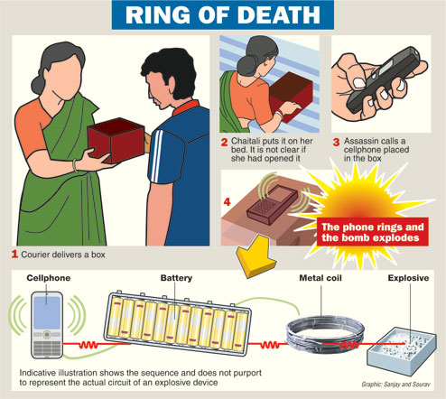 Explosives experts said the parcel bomb that killed Chaitali was once a favourite with militants. Cellphone-activated bombs have been used to trigger terror attacks in Madrid and London.