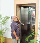 | Hem Narayan Ray in front of the VIP lift at Writers’ that he has manned for three decades. (Sanjoy Chattopadhyaya) |