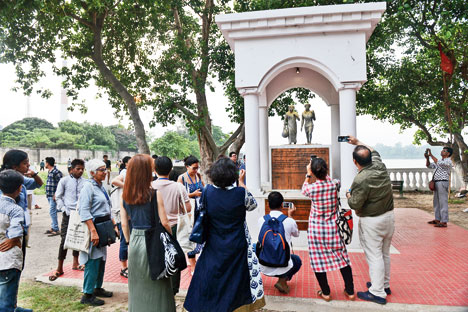 The students, in Calcutta for two weeks for summer school at Jadavpur University, were taken to Bichali Ghat, now a busy ghat ferrying people from Nazirganj in Howrah district to Garden Reach.