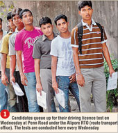 The farce played out on Penn Road, off Belvedere Road, where driving tests are conducted for the Alipore RTO (route transport office).