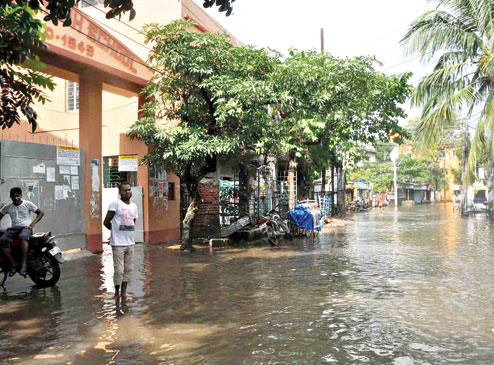 Santragachhi Station Road and Mohiari Road, which most students take on the way to school and back home, were under knee-deep water on Wednesday.