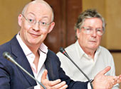 | Ian Blatchford (left) and George Loudon at the National Library on March 22. (Anindya Shankar Ray) |