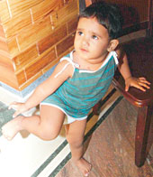 Murder victim Sumantra Bagchi’s one-and-a-half-year-old daughter Soumita the day after her father was fatally shot thrice in front of her. Picture by Gopal Senapati