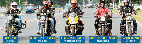 Five bikers from across India toured Calcutta on Tuesday with a mission to convince young voters to vote. The group, named Vande Maatram, set off on a 15,000km rally from Mumbai on March 15 and plans to visit the capitals of all 29 states by April 26.