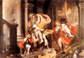 | (Top) Aeneas Flees Burning Troy by Federico Barocci; (below) a page from Sargent’s translation |