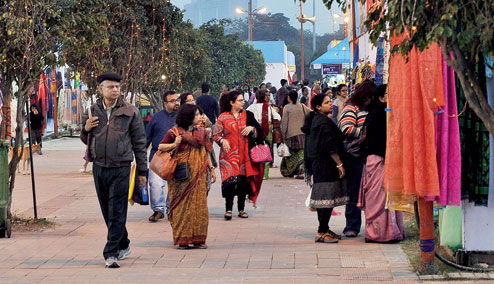 The fifth edition of the fair has 70 stalls selling a variety of ware, from junk jewellery to wall hangings and clothes. Another 30 stalls by self-help groups sells handicraft. The food zone sells winter special pithe puli as well as momo, biryani etc. The kids’ zone will keep tots and teens entertained with rides like merry-go-round, pirate boat and dragon train. There are cultural programmes, too, put up by residents of New Town every evening.