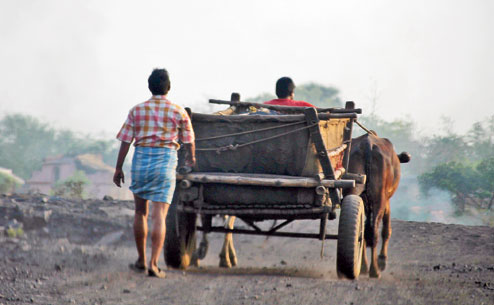 The coal is stolen from mines and pits by the young and the old. Carriers then ferry it on cycles, motorbikes, bullock carts and trucks to dumping grounds from where it is reloaded on trucks and carted to Birbhum, Bankura and Purulia.