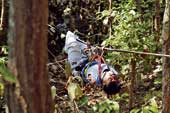 | (Top) Vinod Kumar Singh does the Tyrolean traverse to cross a chasm; trekkers help swimmer Masudur Rahman Baidya up an uneven stretch |