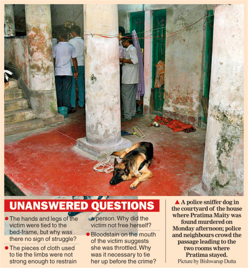 Pratima's husband Dilip, a trader in Andhra Pradesh, had sent one of his employees in Calcutta to check on her on Monday morning as she had failed to respond to his phone calls over the past two days.