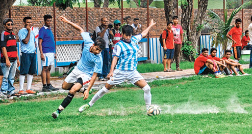 The championship may have mimicked the World Cup but the quips were quintessentially Calcutta. Shouts of “Rooney ke lyang maar (tackle Rooney)” and “Brazil’er jamaye Samba kom kor, dribble beshi kor (Do less of Samba and more of dribbling in that Brazil jersey)” rang out loud through the KB Block playground.
