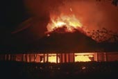 | Vedic Village on fire on Sunday night. A Telegraph picture |