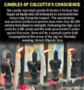 The voices of protest have probably never been younger in post-Independence Calcutta. Ten-year-old Andre Jiggi forced his mother to take him to the “memorial” on Park Street so that they could light candles. “I’ve been reading the papers and watching the news every day. I feel injustice has been done to Rizwanur. I feel bad for his mother. She looks so frightened. Shouldn’t the police be protecting people?” asks the Class V student.