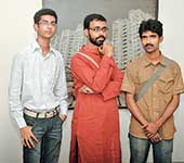 | (From left) Sayak Mitra, Sunil Chandra Pal and Sujit Karmakar at the exhibition at Studio21. (Bishwarup Dutta) |