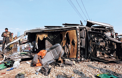 | The remains of a British embassy vehicle after the suicide attack in Kabul on Thursday. (Reuters) |