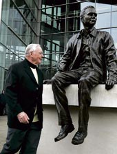 | Armstrong walks past his statue at Purdue (AP) |