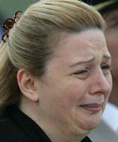 | Suha Arafat weeps as Yasser Arafat?s coffin is taken to a plane on its way to Cairo at an airbase near Paris. (AP) |