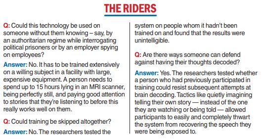 Scientists say the technology currently requires the extensive training of, and cooperation from, the users whose thoughts are to be decoded and is easy to “sabotage”.