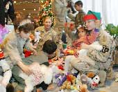 | Iraqi children play with US soldiers during a party for children of the Mother Teresa Orphanage in Baghdad. (Reuters) |