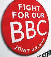 The National Union of Journalists (NUJ) and two other unions were striking to protest against plans by BBC director general Mark Thompson to eliminate about 4,000 jobs.