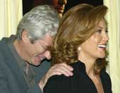 | Richard Gere (left) jokingly hides behind Diane Lane during a photocall in Munich for Unfaithful . (AP/PTI) |