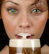 | A model sips Guinness beer in Dublin with contact lenses featuring the drink. (Reuters) |