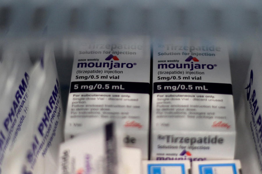 Vials of Eli Lilly's Mounjaro, a tirzepatide injection drug used for treating type 2 diabetes and weight loss, are seen in a fridge at a health clinic in Hyderabad, India. (Reuters)