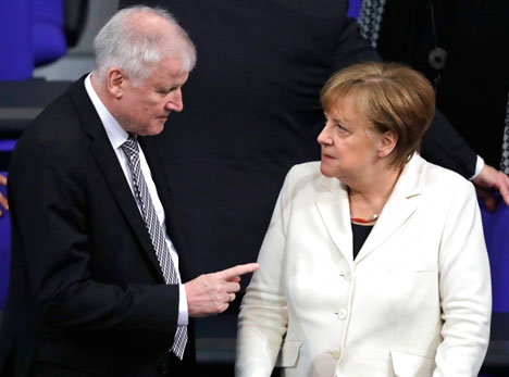 Seehofer averted an immediate collision with Merkel on Monday by giving her two weeks to talk with Germany's EU partners. She has vehemently opposed his calls for Germany to unilaterally turn back people previously registered as asylum-seekers in other EU countries.