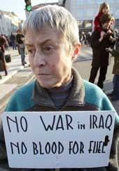 Washington/Baghdad, Jan. 18 (Reuters): Activists poured onto the streets around the world today in mass protests against an attack on Iraq as UN arms chiefs headed to Baghdad to tell its leaders cooperation was the only way to avoid war.