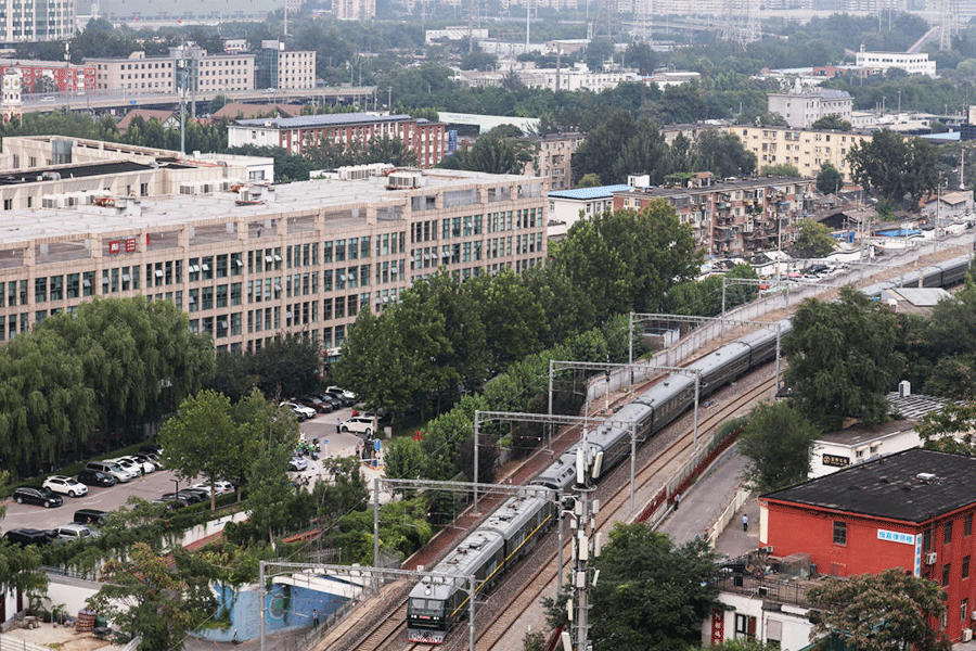 A DF11Z locomotive with the serial number 0003 drew into the Beijing station on Tuesday, pulling more than 20 carriages with a North Korean national flag and its official emblem in gold.