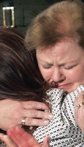 Washington, Feb. 3 (Reuters): The mother of an American Marine who died in Iraq and an Iraqi human rights activist celebrating her vote in Iraq?s election tearfully embraced in the US Congress yesterday, providing a dramatic highlight to President George W. Bush?s State of the Union speech.