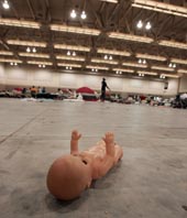 | A doll left behind inside the Riverside Centroplex Red Cross Shelter in Louisiana, now only about half full as victims of Hurricane Katrina start finding new accommodation. (AFP) |