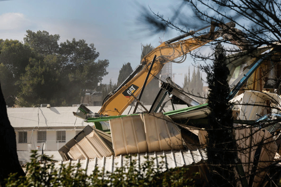 Israel demolished structures inside the U.N. Palestinian refugee agency's East Jerusalem compound on Tuesday after seizing the site last year, in an act condemned by the agency as a violation of international law.