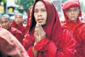 | Buddhist monks at a protest march in Yangon on Tuesday. (AFP) |