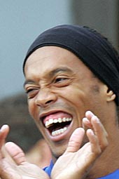 | Brazilian soccer star Ronaldinho Gaucho laughs at a training camp near Rio de Janeiro. (AFP) |