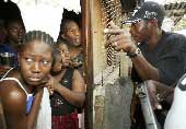 | A rebel looks for armed supporters of President Aristide during a search in Port-au-Prince. (Reuters) |